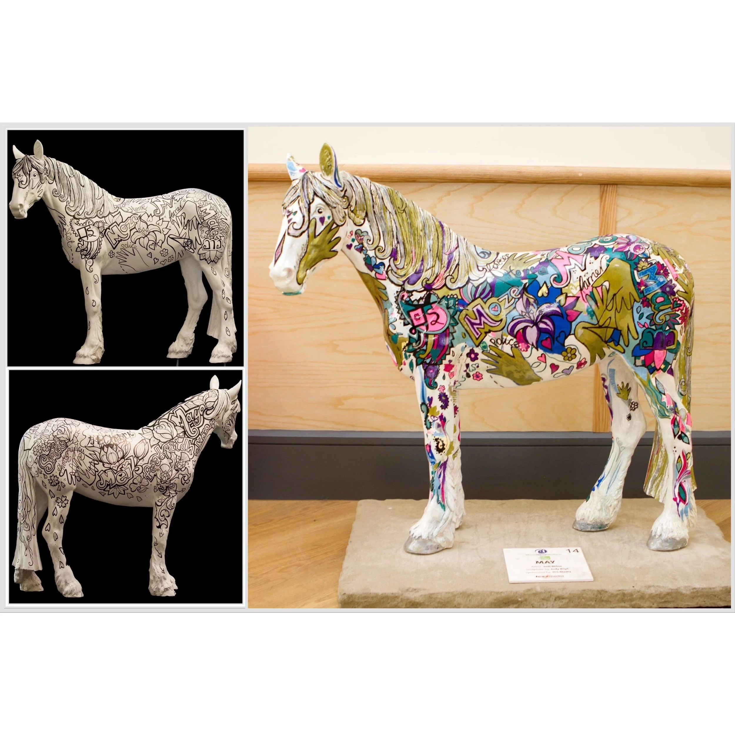 Part of the world horse trail at royal Windsor. I designed him in outlines, so the public could colour him in. he even got some inking from some major equestrians. you can watch a video of his story here funds raised for World Horse Welfare.