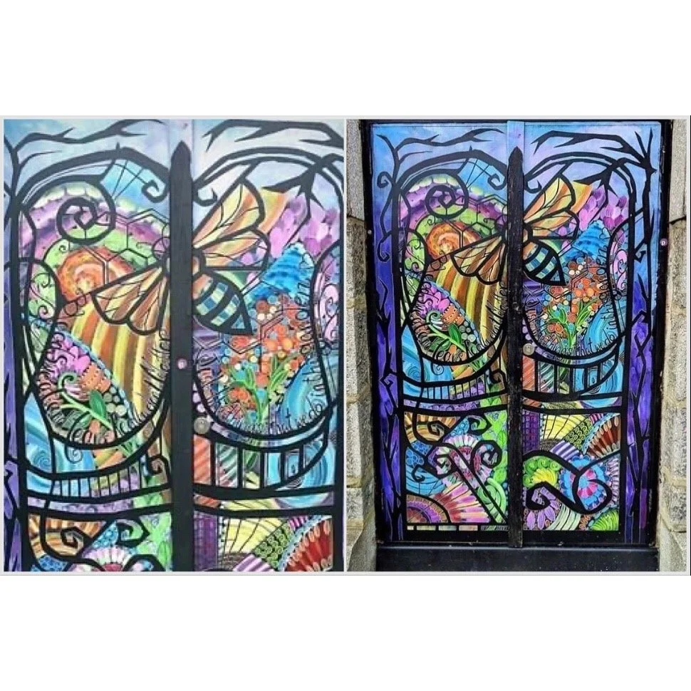 Rather than raise funds, these doors were commissioned by Aberdeen Inspired, to brighten up the city. I based this design on lyrics from a Levellers song “Blood sweat and tears, really dont matter, it’s the things that we do, in this garden”