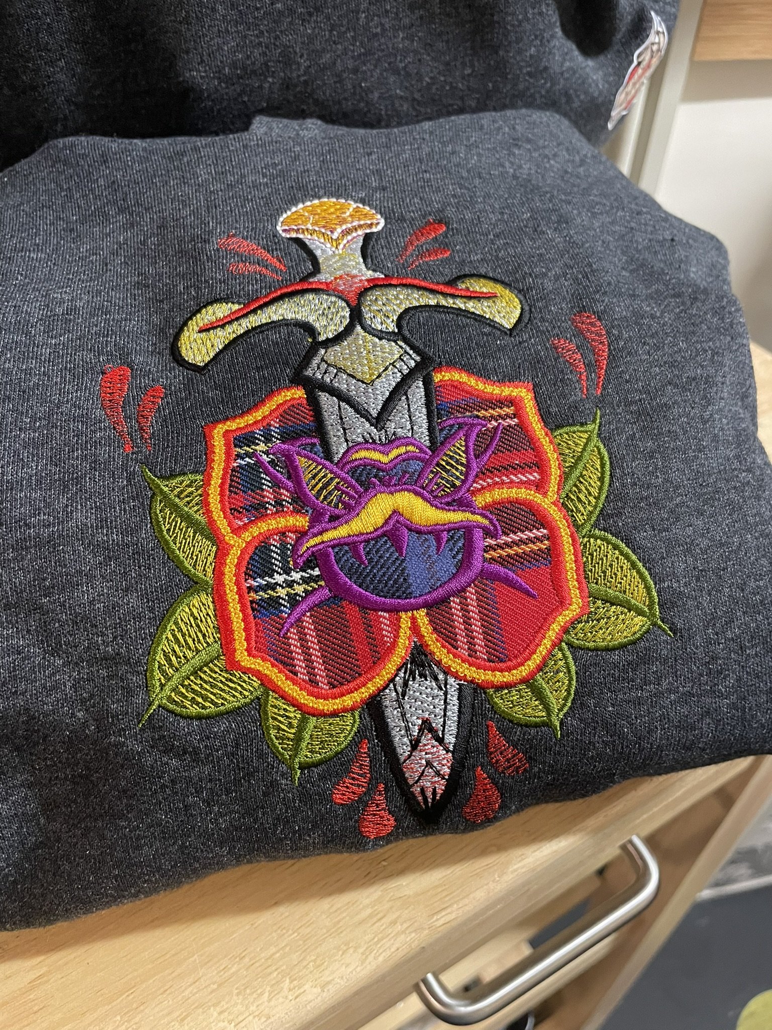 Stand out from the festival crowd with this cool and colourful Levellers 8bit embroidery creation! This is a brand new design and technique Judi has been working on, to stitch individual pixel style embroidery, the final result is so tactile and catches the light beautifully.
